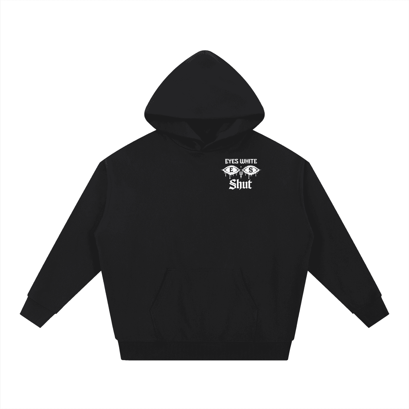 The front features the classic Eyes White Shut logo printed on the left chest.